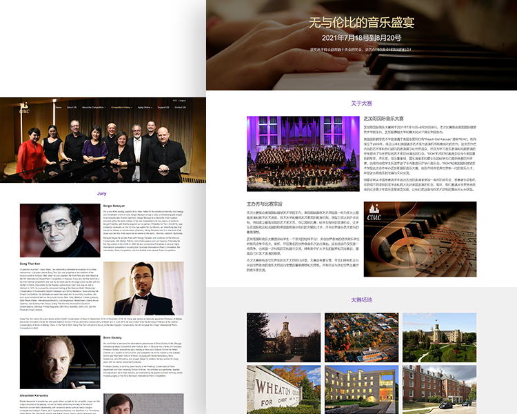 在网站开发之前,青西设计团队对芝加哥国际音乐大赛做了全面的分析和调研,大赛面向群体为全球用户,所以网站采用中英文双语,以满足全球各国用户的语言需求。