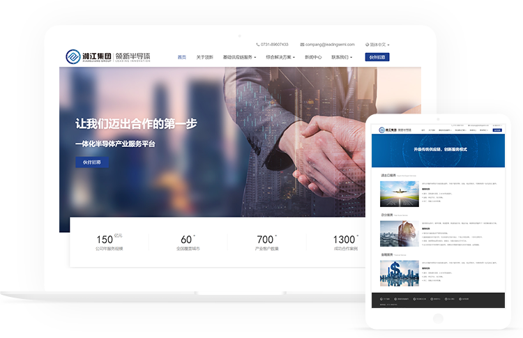 应客户要求,想要网站做的简洁大气,所以在整体色调的选择上,挑选了比领新半导体logo颜色更亮更浅的颜色,整体网站色调不会太沉。
